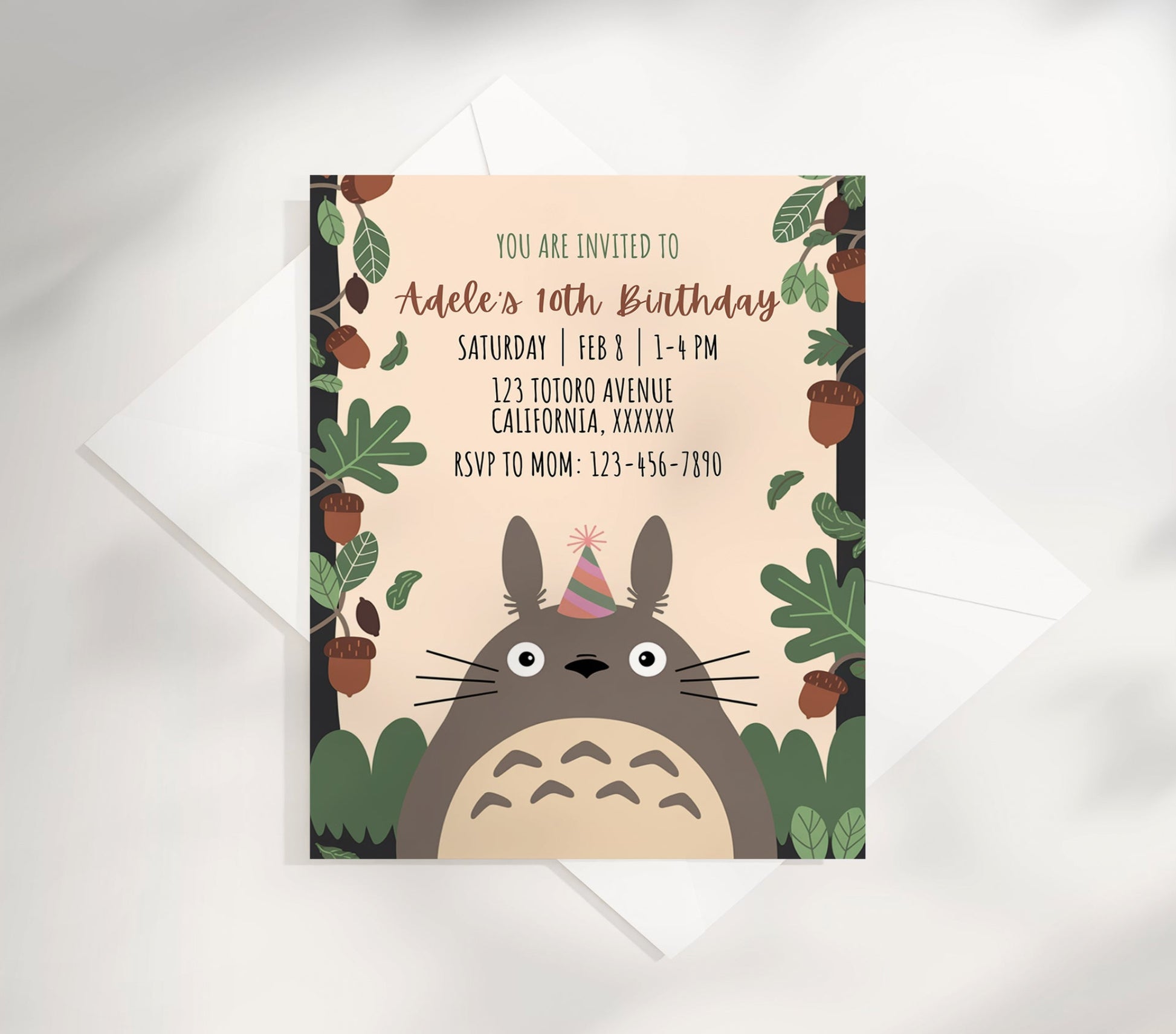 Celebrate your little one’s special day with our enchanting My Neighbor Totoro Birthday Invitation that captures the whimsical charm of Miyazaki’s classic! This editable birthday card features beloved characters like Totoro and the Catbus, bringing the magic of anime right to your party. With appealing colors and delightful illustrations, it's designed to spark joy and excitement among your guests. Customize it easily on Canva for a personal touch that reflects your child’s unique spirit.